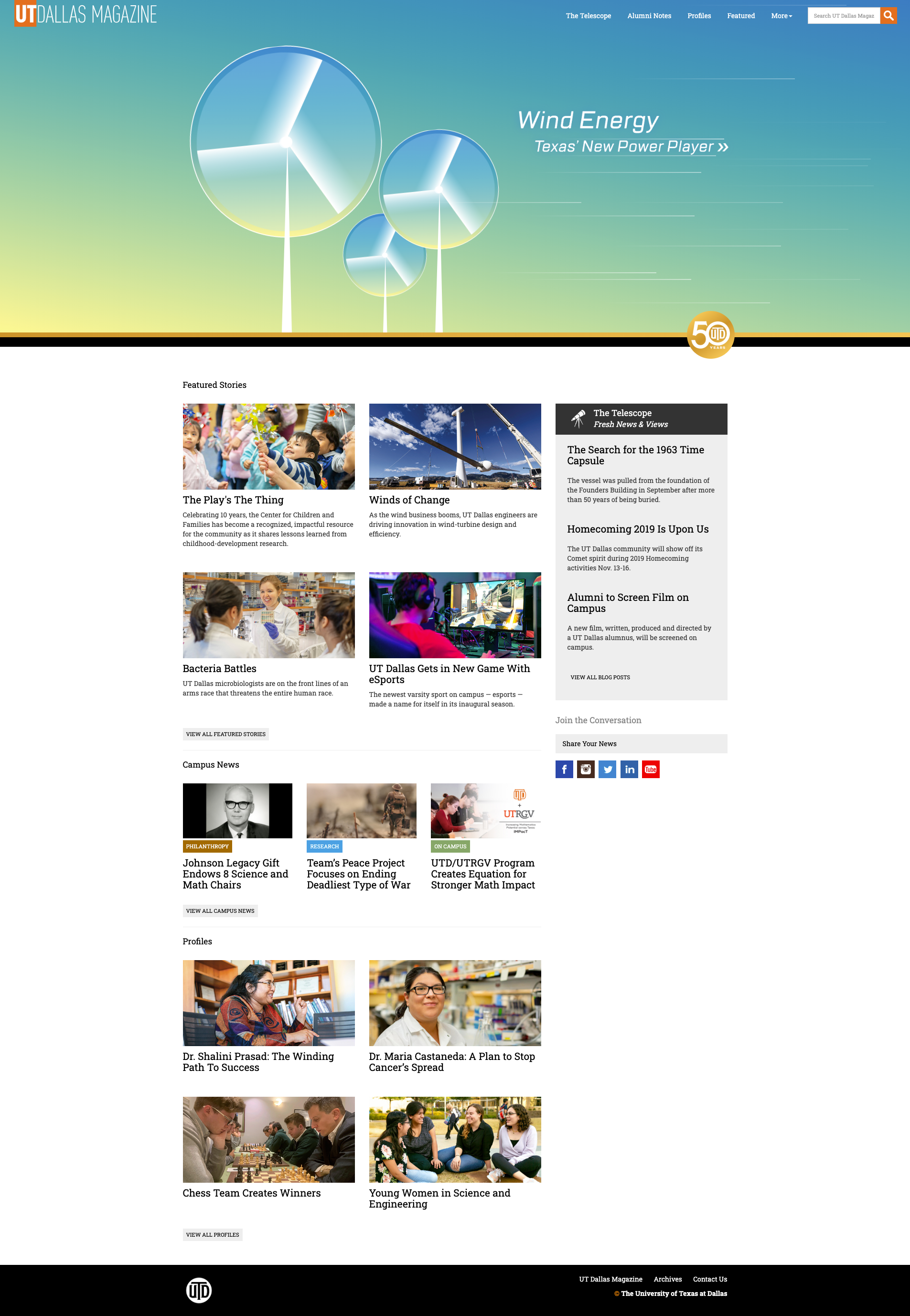 UT Dallas Magazine offers an in-depth look at life at UTD — from the research laboratories to the classrooms, from student life to alumni accomplishments.